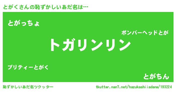 | ヒーロー風カッコイイあだ名 | 『黄金騎士トガ』『ウルトラとがくマン』 |