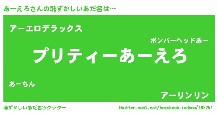 | 意味不明あだ名 | 『ペロリンあーえろ』『自称あーえろ』 |