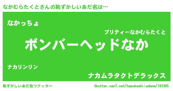 | 意味不明あだ名 | 『眠気覚ましガムなかむらたくと味』 |