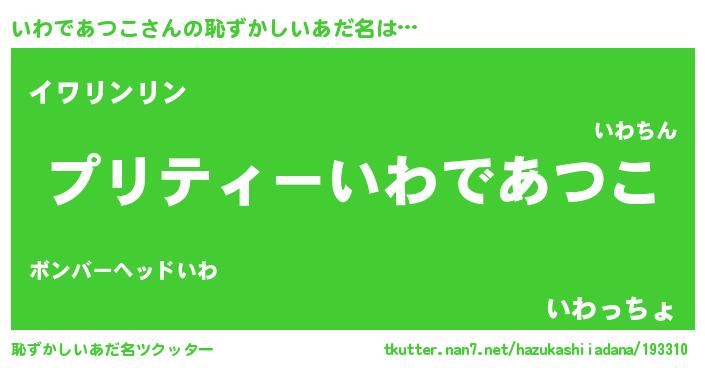 | ヒーロー風カッコイイあだ名 | 『スーパーイワデアツコ』『黄金騎士イワ』 |