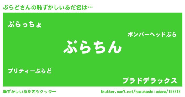 | ヘコむあだ名 | 『ぶらど(笑)』『なまこ酢』 |