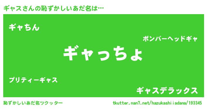 | 男性向けラノベタイトル風あだ名 | 『ギャス~年齢イコール彼女いない歴の魔法使い~』 |