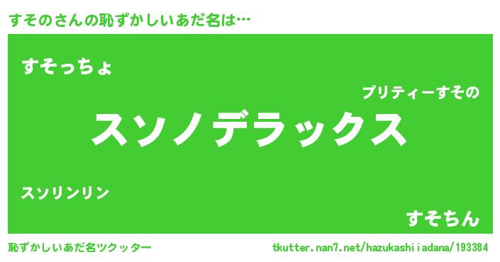 | ヒーロー風カッコイイあだ名 | 『仮面スソダー』『サイバー戦士スソノ』 |