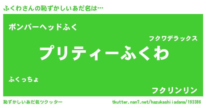 | 男性向けラノベタイトル風あだ名 | 『フクワスレイヤー』『ふくわの憂鬱』 |