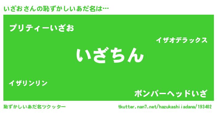 | 男性向けラノベタイトル風あだ名 | 『いざおという概念が存在しない退屈な世界 』 |