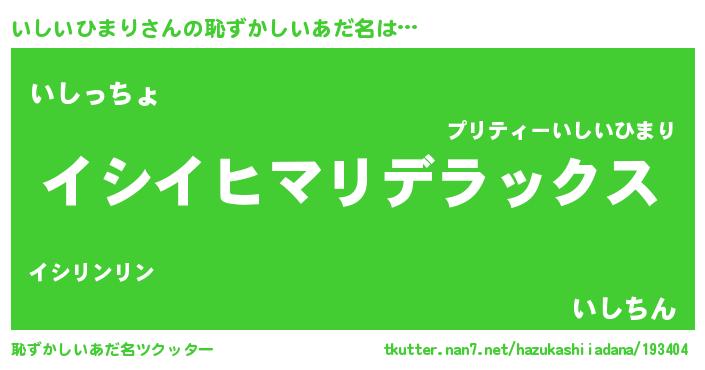 | ヘコむあだ名 | 『なまこ酢』『いしいひまり(笑)』 |
