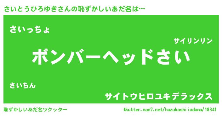 | 男性向けラノベタイトル風あだ名 | 『おまえをオタクにしてやるから、俺をさいとうひろゆきにしてくれ! 』 |
