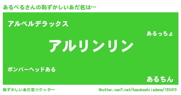 | 女子向けラノベタイトル風あだ名 | 『あるべるは平凡を望む』 |
