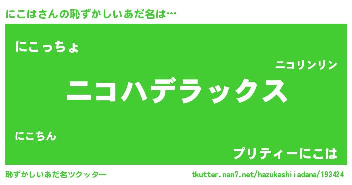 | 意味不明あだ名 | 『自称にこは』『にこはフォーエバー』 |