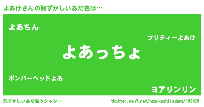 | 意味不明あだ名 | 『もやし科よあけ属』『永久保存よあけ』 |