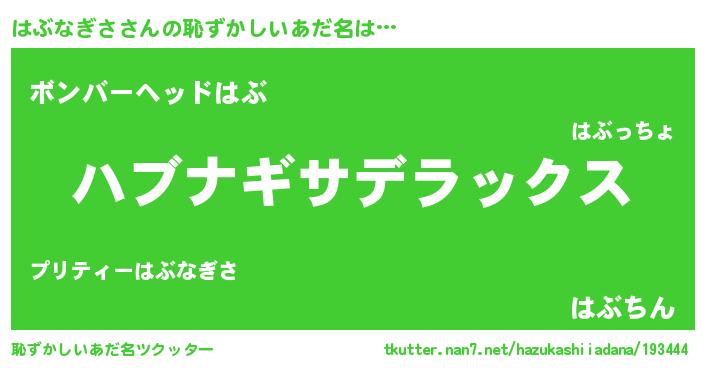 | 意味不明あだ名 | 『自称はぶなぎさ』『永久保存はぶなぎさ』 |