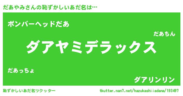 | ヒーロー風カッコイイあだ名 | 『究極戦士ダアヤミ』『愛の使者だあやみ』 |