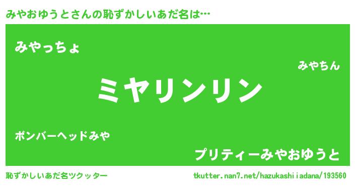 | 男性向けラノベタイトル風あだ名 | 『みやおゆうとの嫁は女の子じゃないと思った?』 |