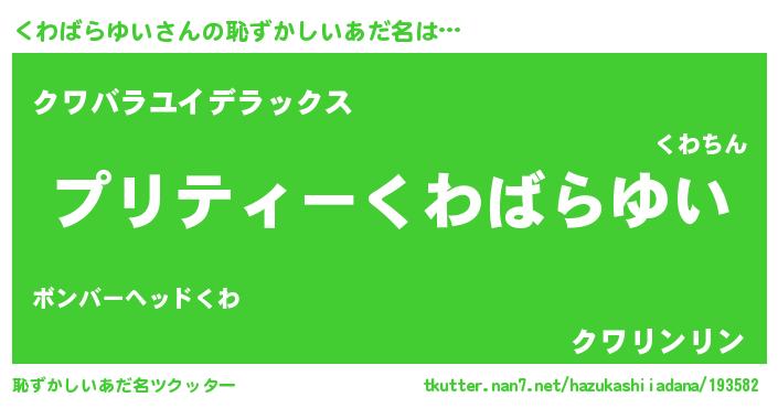 | 男性向けラノベタイトル風あだ名 | 『くわばらゆいの憂鬱』 |