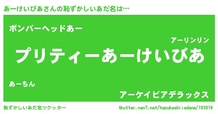| 男性向けラノベタイトル風あだ名 | 『あーけいびあの憂鬱』 |