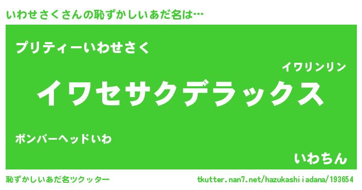 | 意味不明あだ名 | 『自称いわせさく』『ペロリンいわせさく』 |