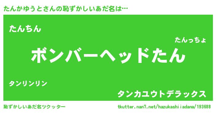 | ヘコむあだ名 | 『たんかゆうと(震え声)』『つくし』 |