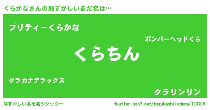 | 男性向けラノベタイトル風あだ名 | 『くらかなという概念が存在しない退屈な世界 』 |