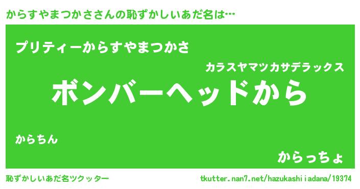 | 男性向けラノベタイトル風あだ名 | 『ノーゲーム・ノーカラスヤマツカサ』 |