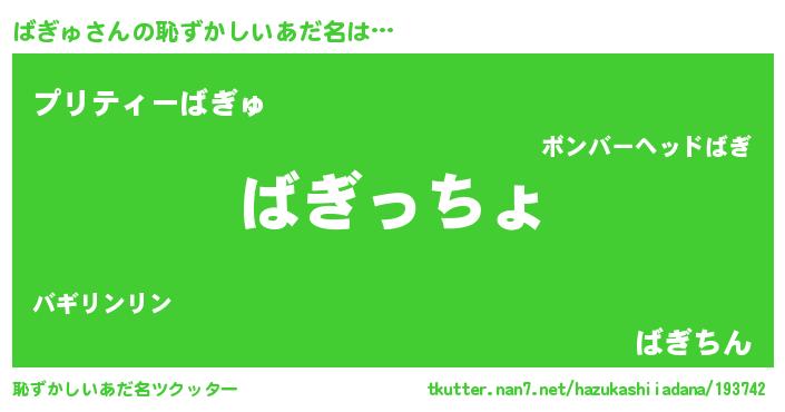 | 伝説のあだ名 | 『秘められし忍者ばぎゅ』 |