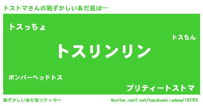 | 意味不明あだ名 | 『とにかく怪しいトストマ』 |