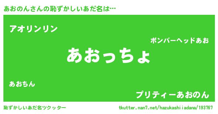 | 男性向けラノベタイトル風あだ名 | 『アオノンスレイヤー』『あおのんの憂鬱』 |