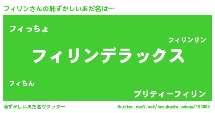| 意味不明あだ名 | 『自称フィリン』『しいたけ科フィリン属』 |