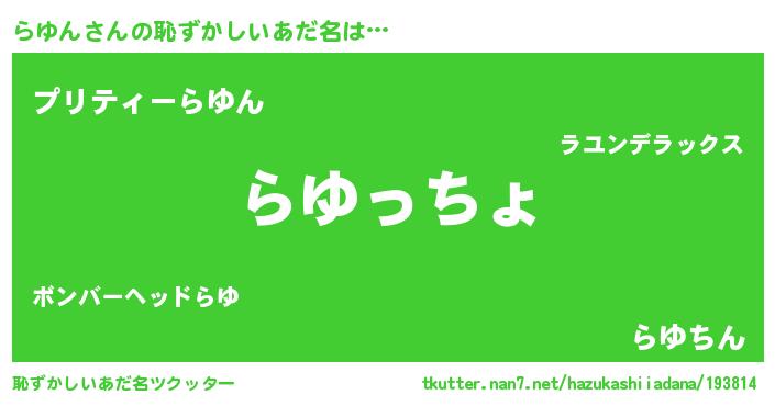 | ヘコむあだ名 | 『豆乳』『らゆにー』『らゆん(笑)』 |