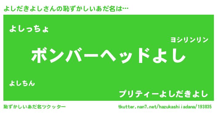 | 意味不明あだ名 | 『住所不定無職よしだきよし(1歳)』 |