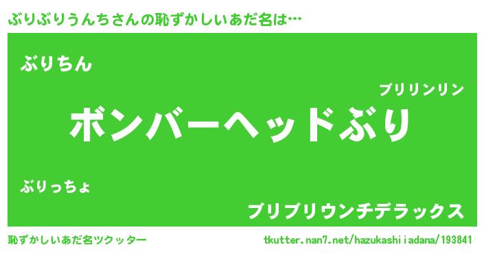 | ヘコむあだ名 | 『ぶりぶりうんち(遠い目)』『ぶりお』 |