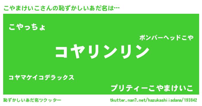 | 女子向けラノベタイトル風あだ名 | 『こやまけいこは平凡を望む』 |