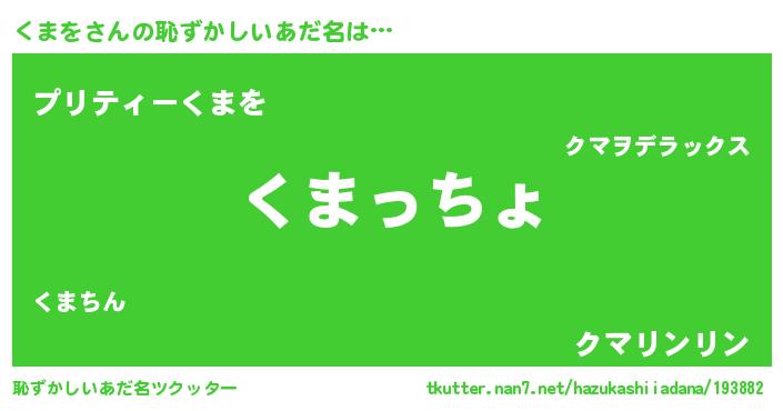 | 意味不明あだ名 | 『くまをフォーエバー』『ペロリンくまを』 |