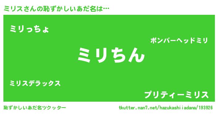 | 意味不明あだ名 | 『永久保存ミリス』『ミリスフォーエバー』 |