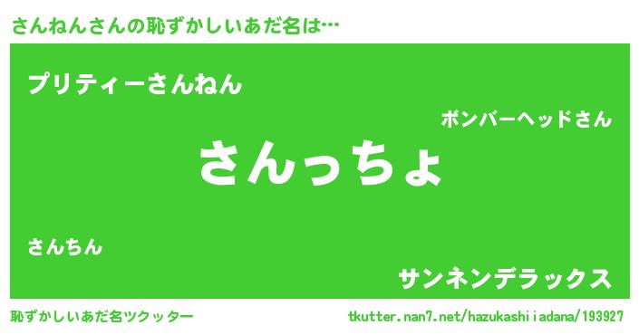 意味不明あだ名 | 『なめこ科さんねん属』『自称さんねん』 |