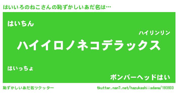 | ヘコむあだ名 | 『はいいろのねこ(笑)』『はいぷりん』 |