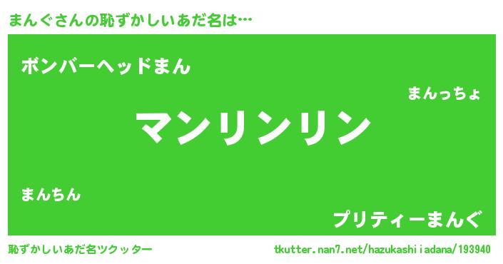 | 男性向けラノベタイトル風あだ名 | 『この素晴らしい世界にまんぐを!』 |