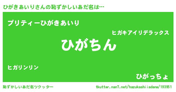 | 意味不明あだ名 | 『永久保存ひがきあいり』 |
