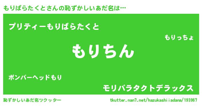 | 男性向けラノベタイトル風あだ名 | 『モリバラタクトスレイヤー』 |