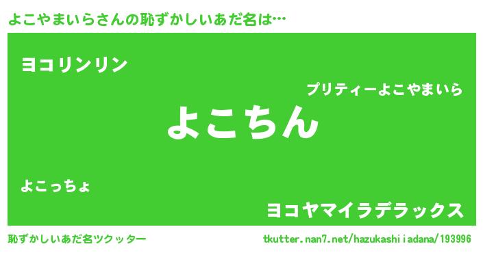 | ファンタジー風あだ名 | 『ユリヨコヴァット』『ヨコディッシュ』 |