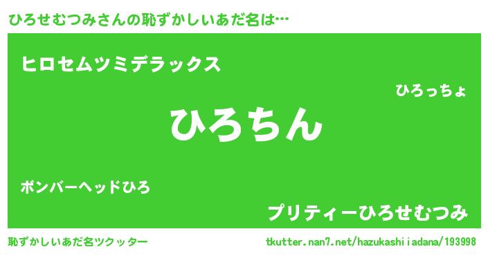 | 意味不明あだ名 | 『永久保存ひろせむつみ』 |
