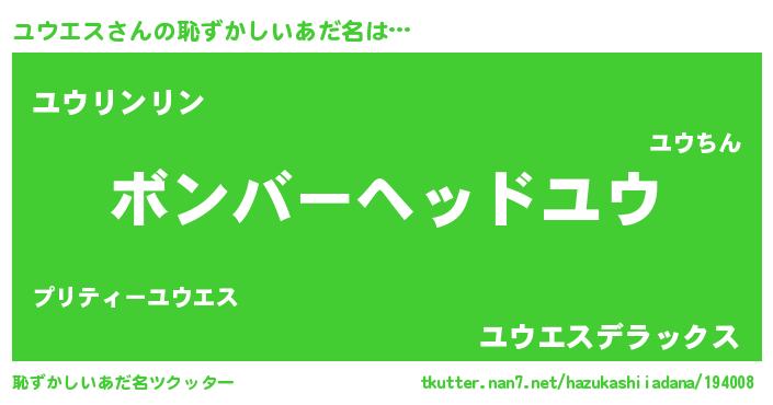 | ヘコむあだ名 | 『ユウぷりん』『ユウエス(笑)』 |