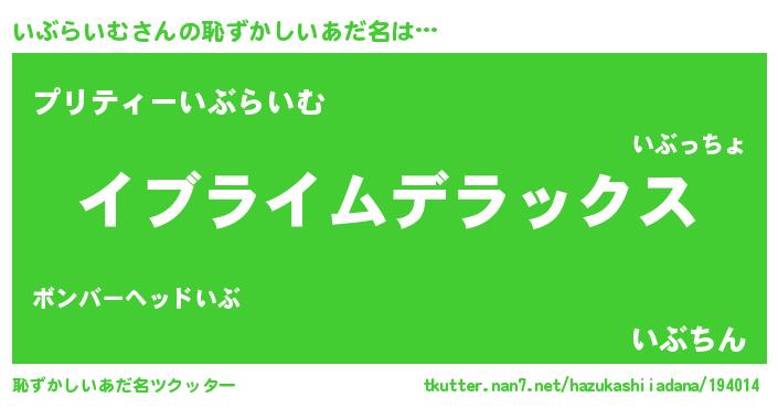 | 意味不明あだ名 | 『自称いぶらいむ』『ペロリンいぶらいむ』 |