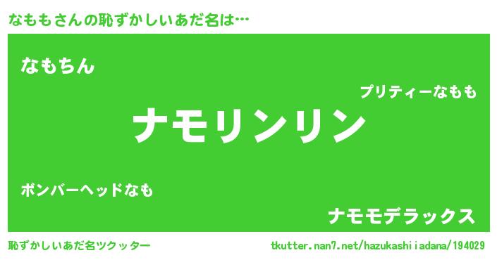 | ヘコむあだ名 | 『なもを』『なもも(笑)』『なももー』 |