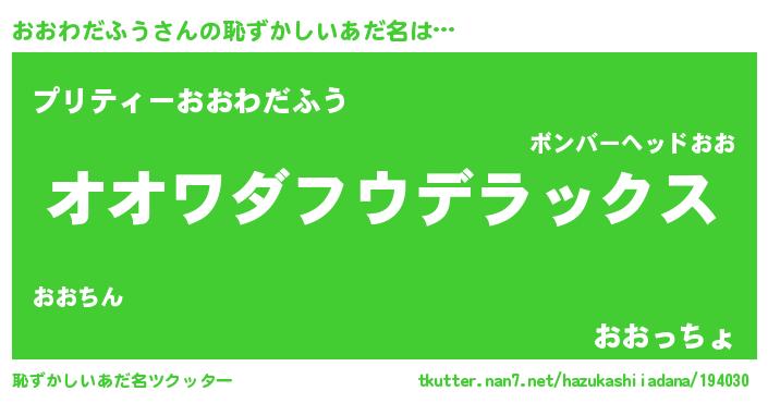 | 意味不明あだ名 | 『自称おおわだふう』 |