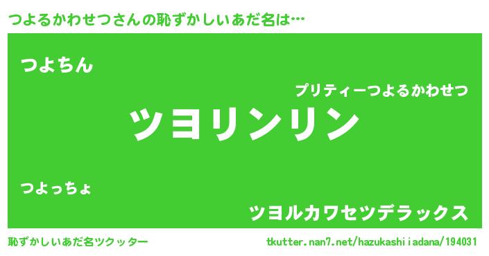 | 意味不明あだ名 | 『とにかく怪しいつよるかわせつ』 |
