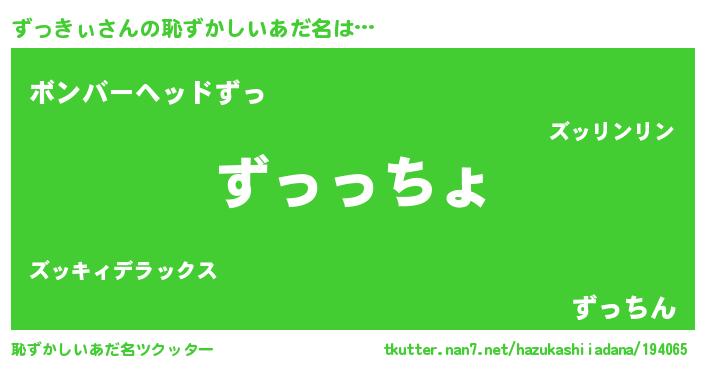 | 欧米人風あだ名 | 『ずっきぃクリステル』 |
