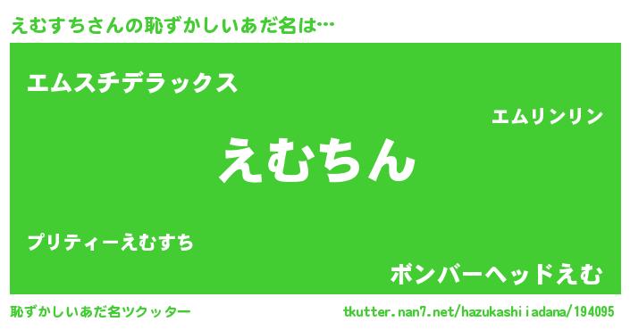 | 意味不明あだ名 | 『永久保存えむすち』『自称えむすち』 |
