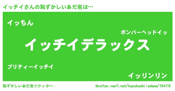 | ヘコむあだ名 | 『イッチイ(苦笑)』『イッお』『豆乳』 |