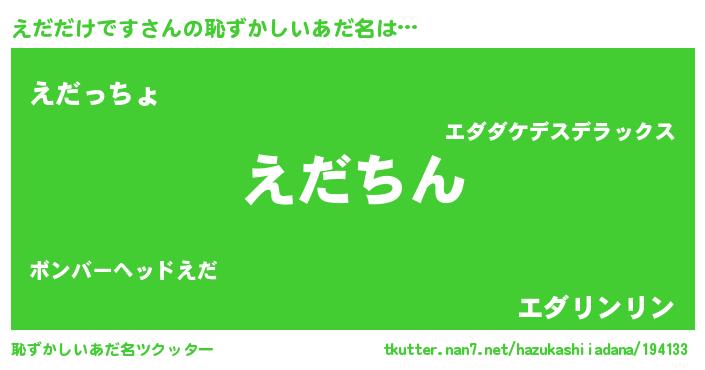 | ヘコむあだ名 | 『えだだけです(爆)』『レバニラ』 |