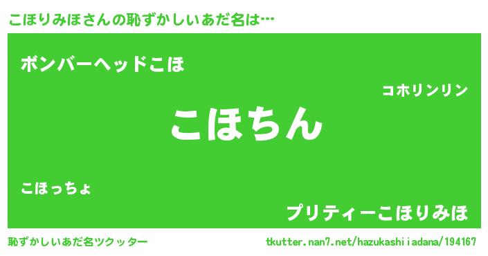 | ヘコむあだ名 | 『こほりみほ(苦笑)』『こほっふぃ~』 |